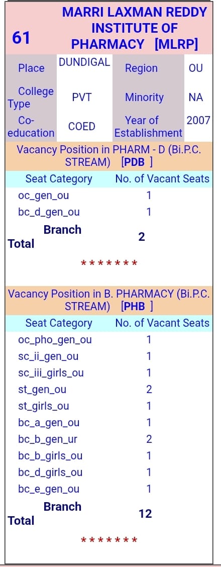 The college shall submit a daily report to the Head office with the admission status in terms of reported / actually admitted / category of admission / fee paid if any and other particulars to be given. The college shall also give the data on a daily basis on the vacancy position.